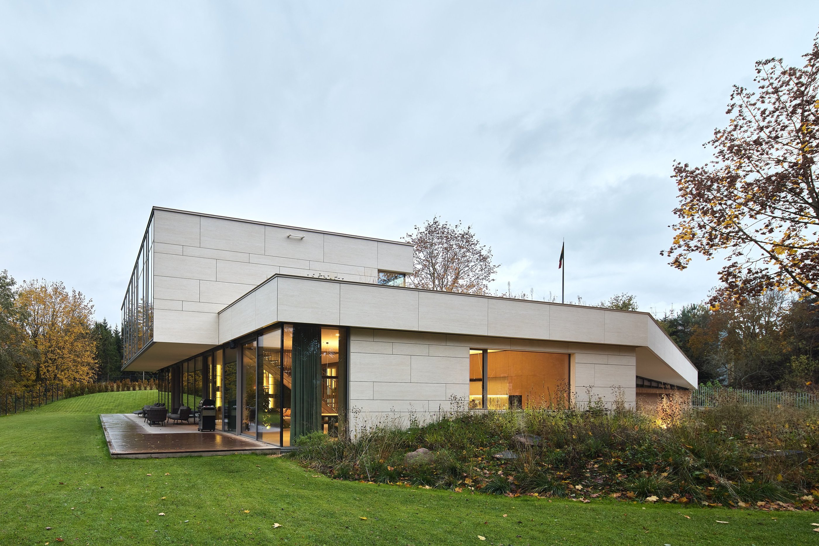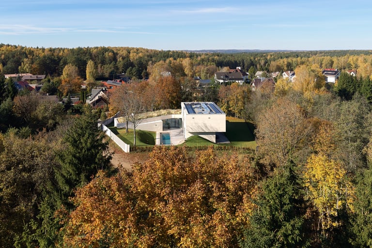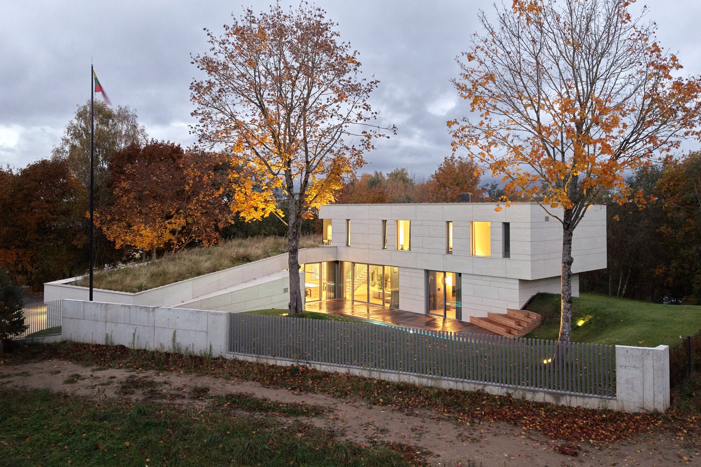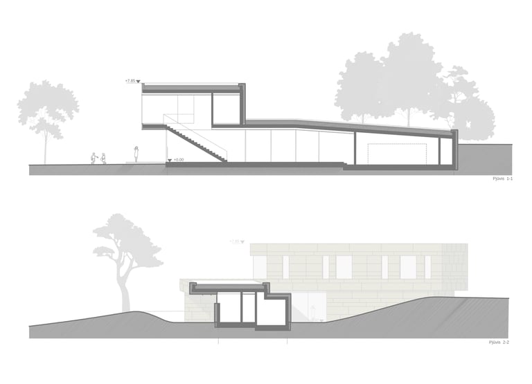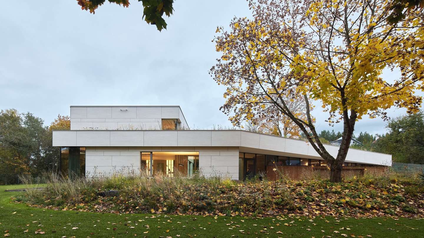 Pastato idėją inspiravo esamas sklypo reljefas. Jį deformuojant, kuriamos skirtingo charakterio ratu besijungiančios lauko erdvės. Epicentre projektuojamas nedidelis žalias kiemelis, kuris veikia, kaip šviesos šulinys, įleidžiantis pietinę saulę į interjerą. Pastatas susideda iš kelių dalių, atkartojančių buvusio sodybinio užstatymo kontūrus. Dvi dalys jungiasi per įėjimo holą ir perdengiamos vientisu apželdintu stogu. Antro aukšto tūris kaip antstatas „uždedamas“ ant pirmo aukšto dalies. Vitrinomis „trinama“ pastato riba kuria vientisą persiliejančių interjero-eksterjero erdvių sistemą.