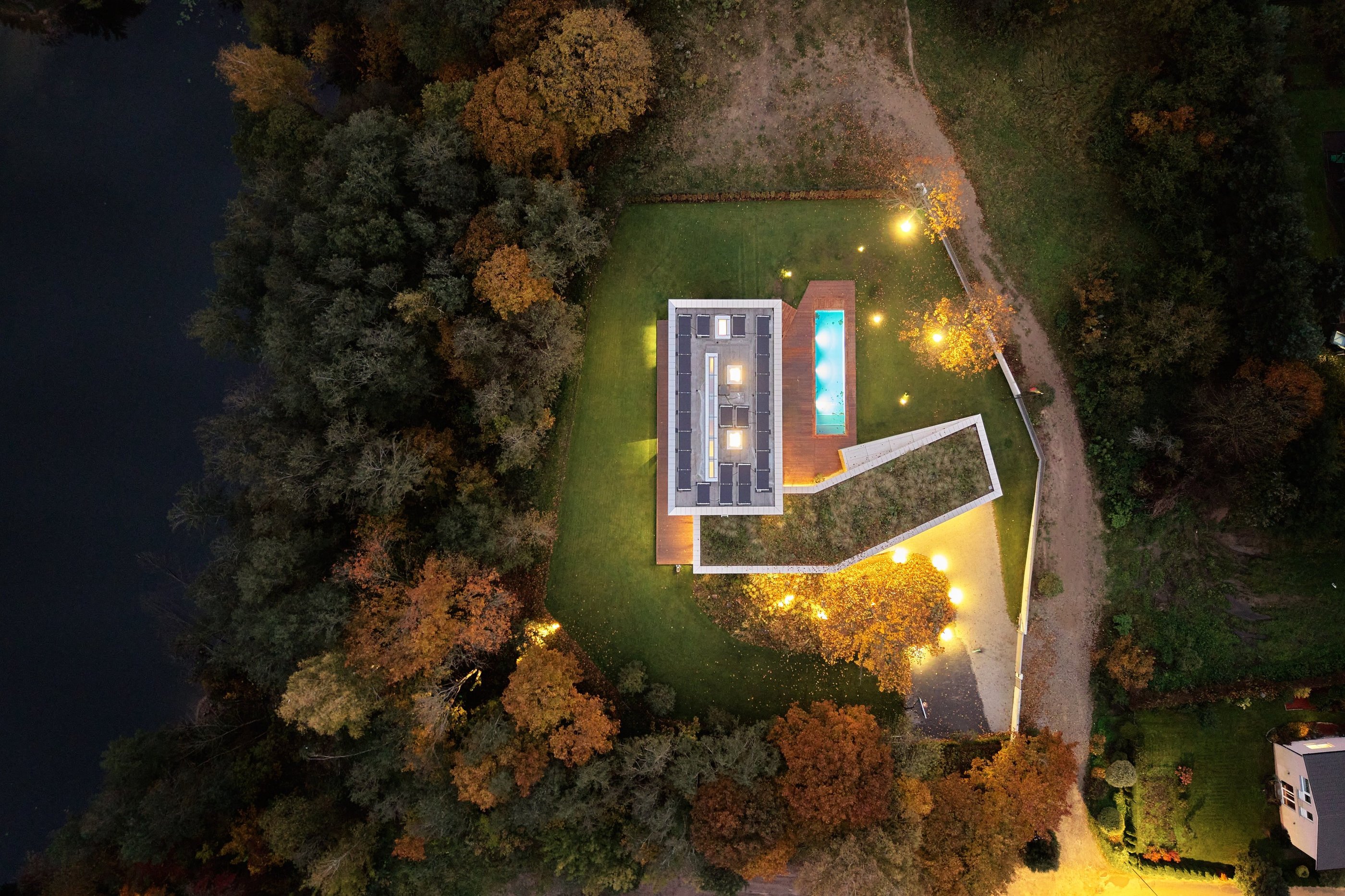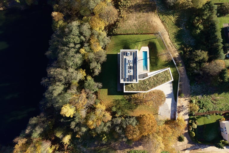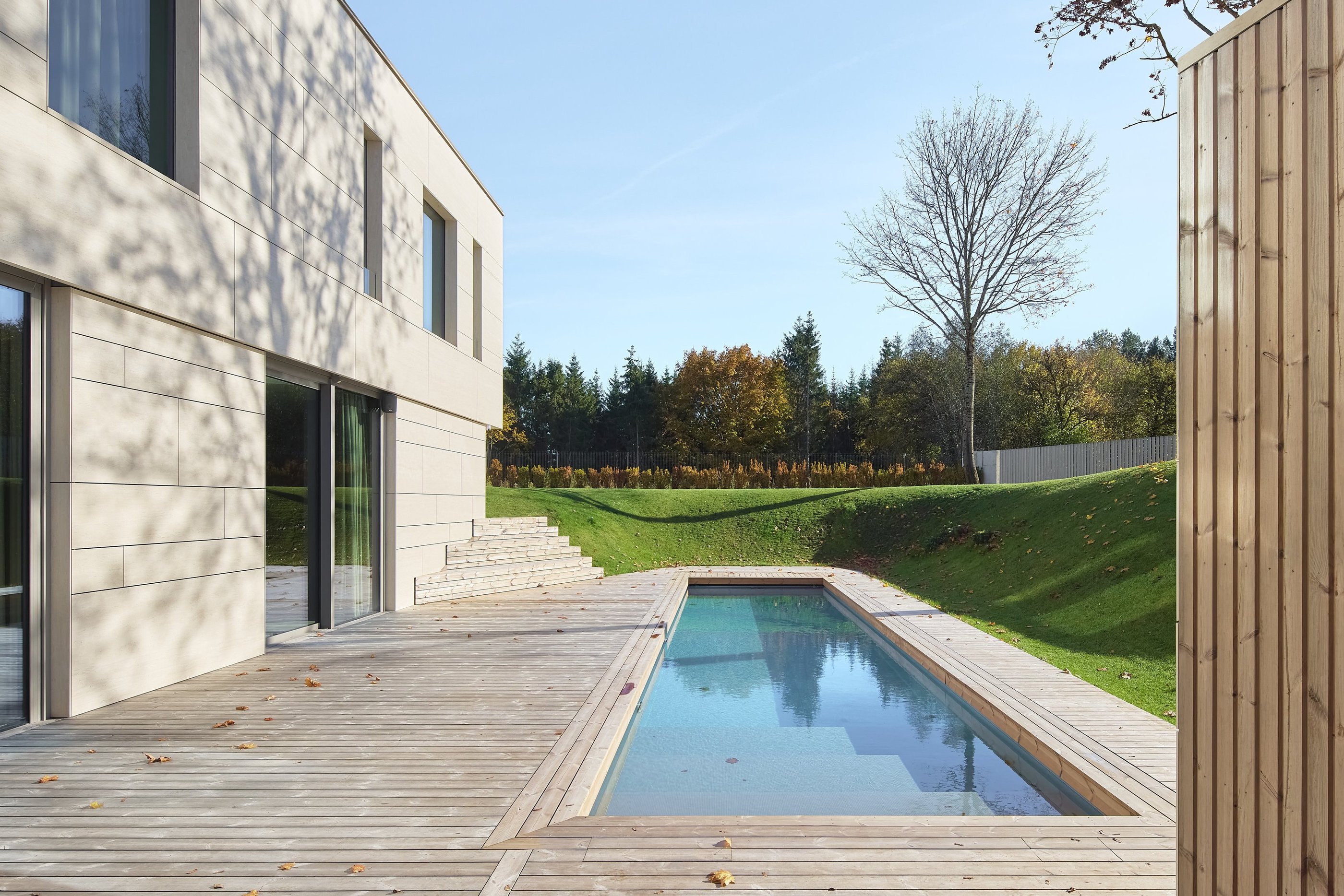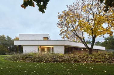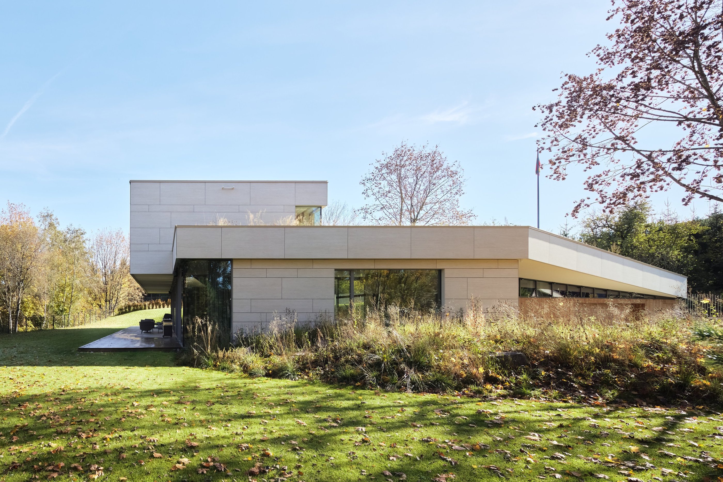 Pastato idėją inspiravo esamas sklypo reljefas. Jį deformuojant, kuriamos skirtingo charakterio ratu besijungiančios lauko erdvės. Epicentre projektuojamas nedidelis žalias kiemelis, kuris veikia, kaip šviesos šulinys, įleidžiantis pietinę saulę į interjerą. Pastatas susideda iš kelių dalių, atkartojančių buvusio sodybinio užstatymo kontūrus. Dvi dalys jungiasi per įėjimo holą ir perdengiamos vientisu apželdintu stogu. Antro aukšto tūris kaip antstatas „uždedamas“ ant pirmo aukšto dalies. Vitrinomis „trinama“ pastato riba kuria vientisą persiliejančių interjero-eksterjero erdvių sistemą.